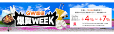 - 指定支払い方法での決済で対象金額の4%のPayPayポイント(期間限定)を付与