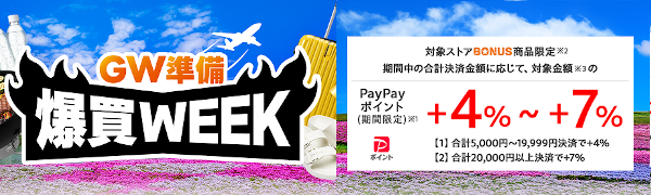 - 1注文につき3,000円以上の決済でPayPayポイント+4%