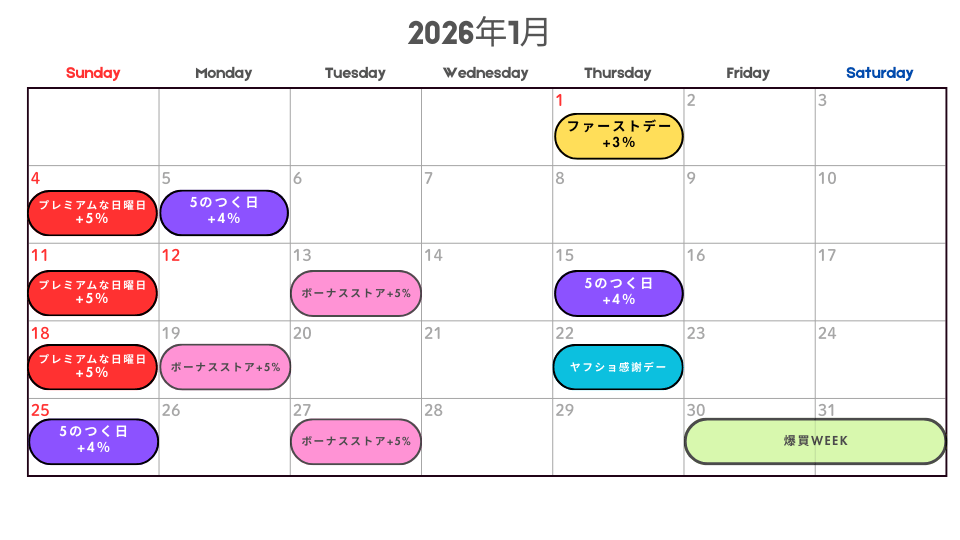 2026年1月のお得な日一覧