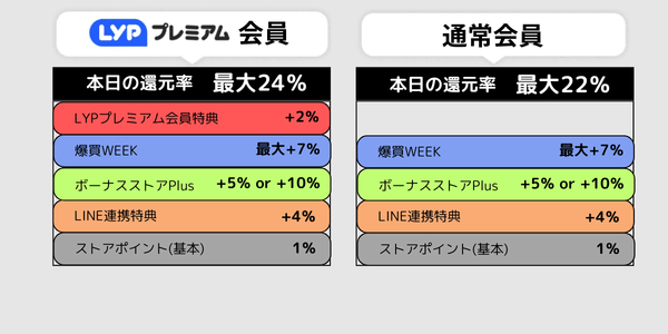 LYPプレミアム会員はさらに+2%が加算され、最大24%と最大級の還元率となります!