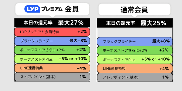 LYPプレミアム会員はさらに+2%が加算され、最大27%と最大級の還元率となります!