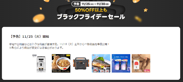 11/18(火)正午から一部商品が事前公開されるので、お目当ての商品が無いかチェックしましょう!
