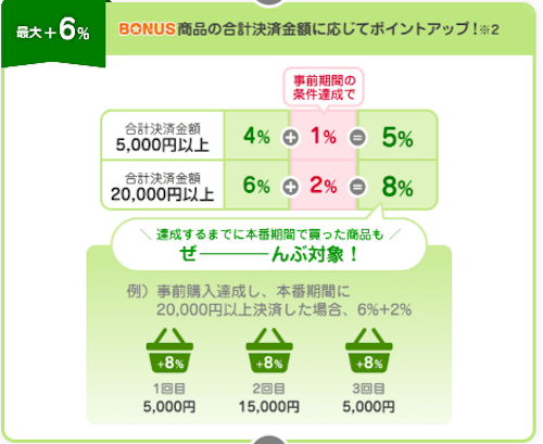 2.ボーナス商品の決済額に応じて最大+6%