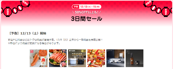 - 大きな買い物は12月13日(土)~15日(月)のラスト3日間に!