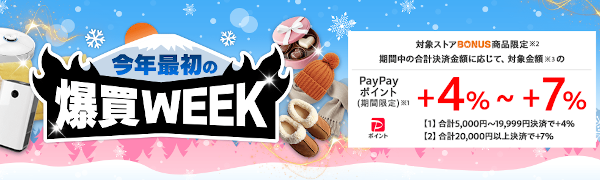 - 1注文につき3,000円以上の決済でPayPayポイント+4%